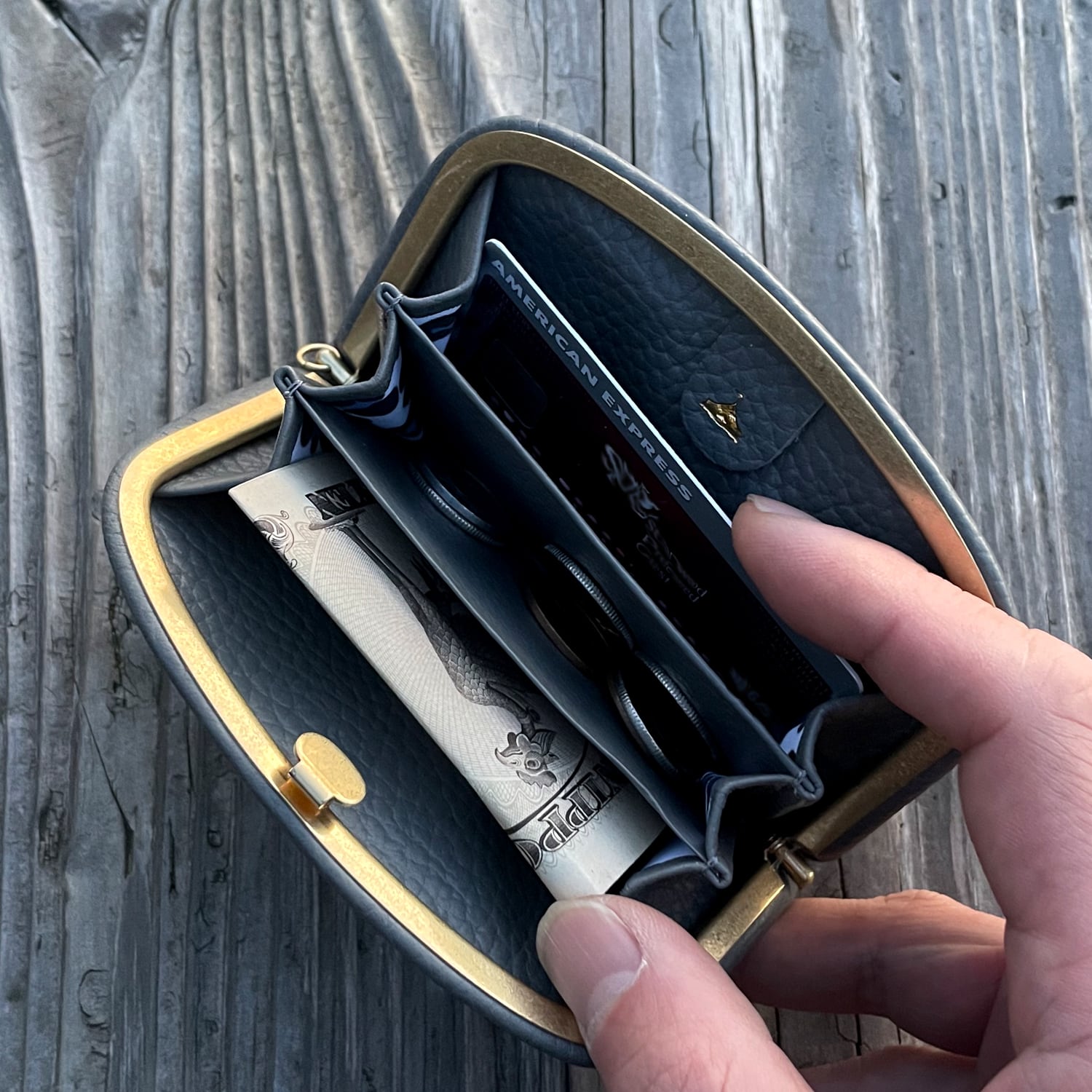 革と共に経年変化する真鍮口金をお楽しみ頂けます。