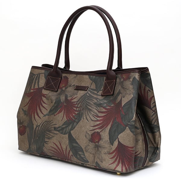 大胆にボタニカル柄をプリントした大容量のトートバッグ。