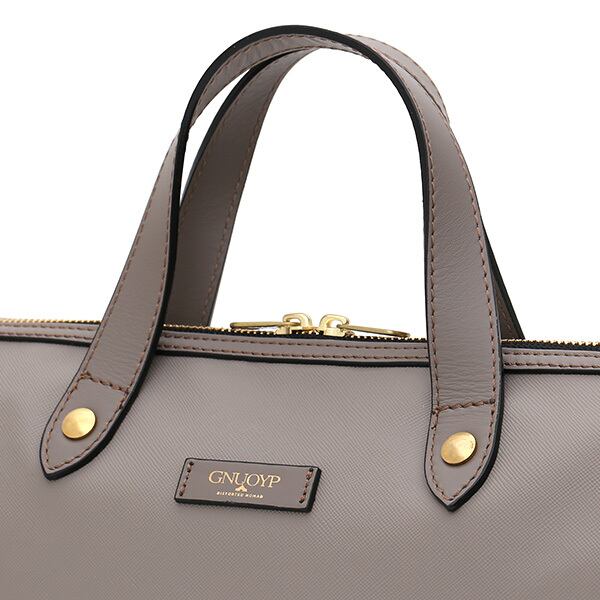 表面のポリウレタンはサフィアーノ型のエンボス(凸凹)が施されているので傷が目立ちにくく雨などの濡れにも強い素材となっています。ハンドル部分など付属に使用している牛革はオイルを含ませて鞣しているので握り心地が良く使い込むほど馴染んでいき味が出てきます。