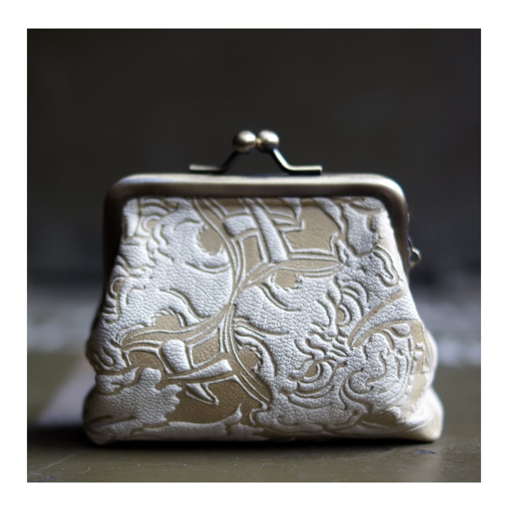 そんな歴史を持つ”がま口”に日本伝統刺青の文身師で画家のOT氏の作品を大胆に落し込んだシリーズ。ベース素材には山羊革を使用。描き下ろしたデータを版にし140℃の熱で高圧プレス。線、一つ一つがとても力強くエネルギッシュな仕上がりに。かわいいサイズ感で愛嬌もある唯一無二な”がま口”です!