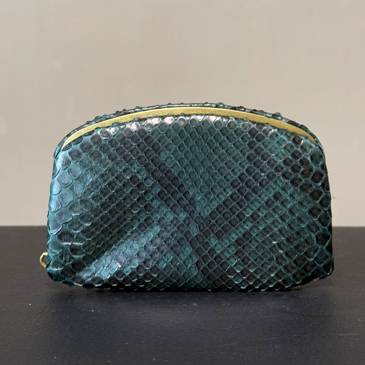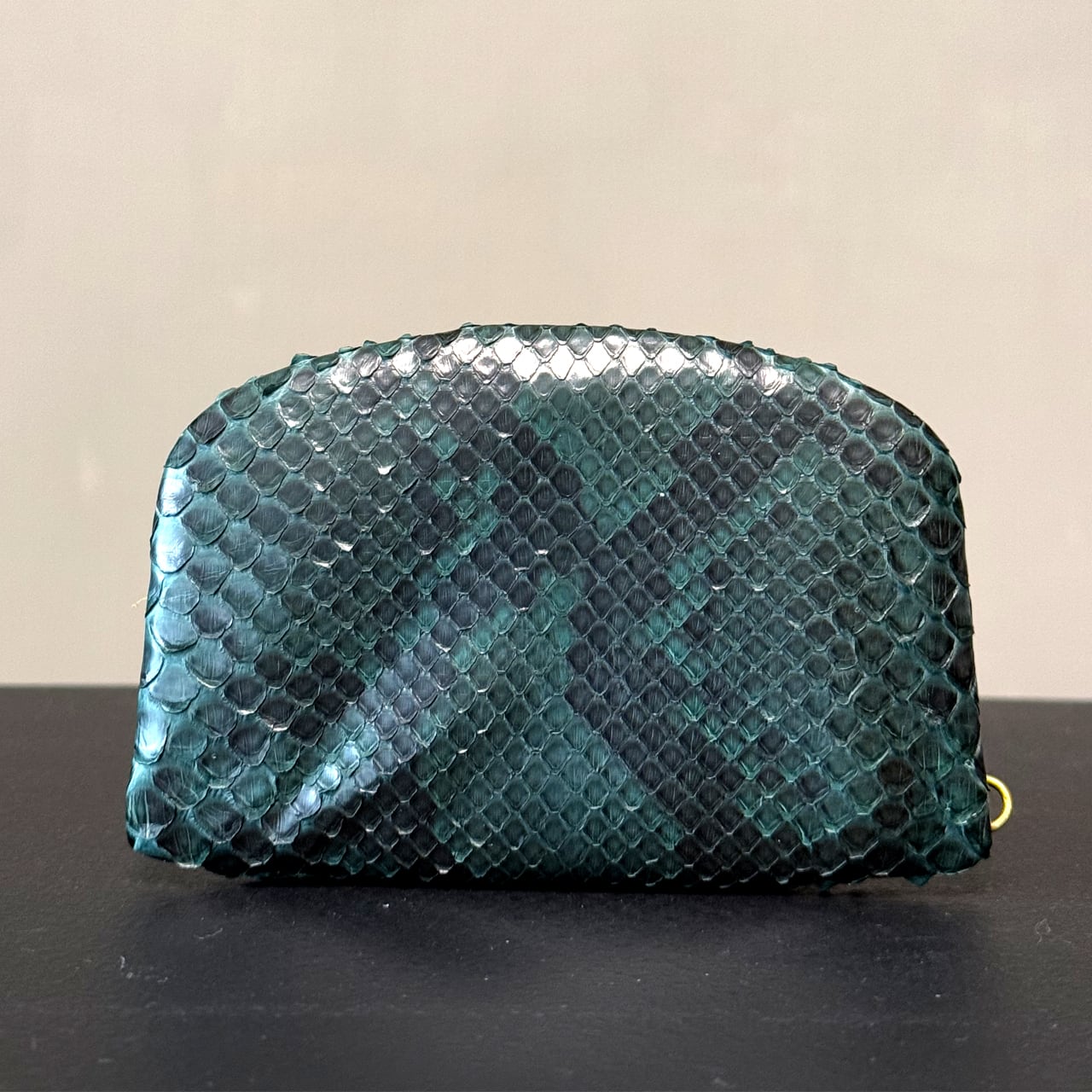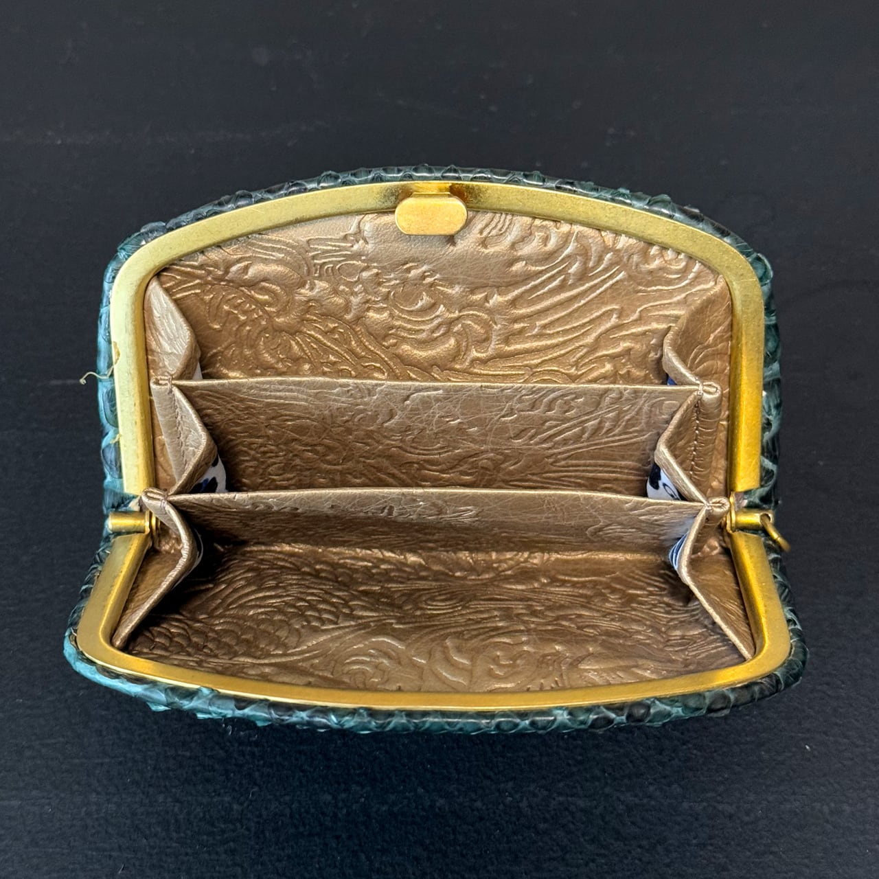 天溝コンパクトウォレット GREEN(蛇革/ ダイアモンドパイソン )