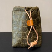 革の表面には画工 遊鷹氏によるアートワークを型押し。粋でモダンな巾着BAGに仕上がりました。
