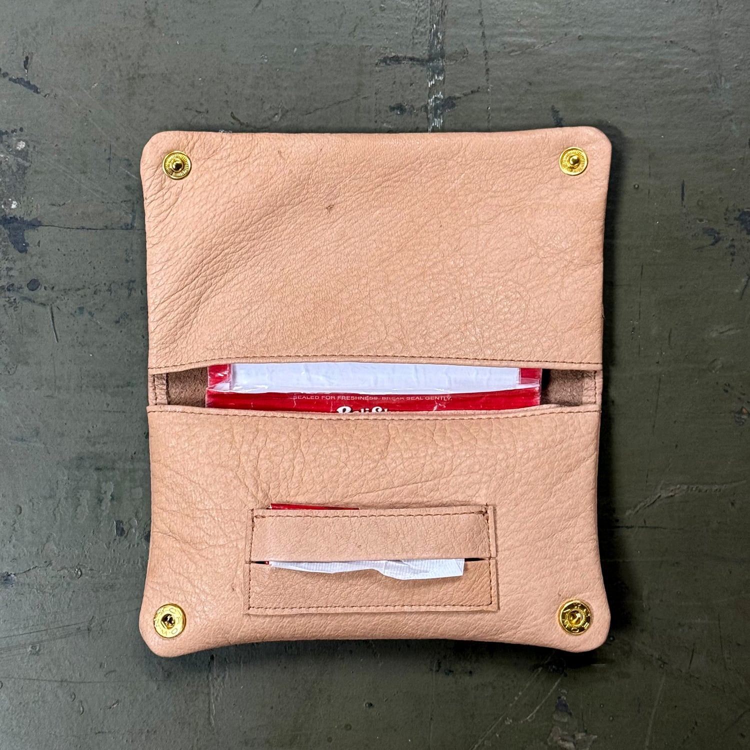 手巻き、パイプ、煙管やヴェポライザーで使用するタバコの葉の持ち運びに便利です。 ペーパーポケット付きで内側は2つに仕切られており、タバコの葉とライターなどの小物を分けて入れられます。 プレゼントにも最適です♪